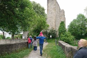Anschließend wanderte die Gruppe auf dem Kamm der Weinberge in Richtung Mühlhausen, wo sie sich die Ruinen der Engelburg und der Walpurgiskirche anschauten. Über den Vier-Burgen-Steg gelangte die Gruppe zurück auf die Hofener Neckarseite und stiegen auf zur Hofener Burgruine und St. Barbara. Von hier ging es zurück zum Ausgangspunkt, wo sich die Gruppe aufteilte um in der alten Ziegelei zum gemütlichen Ausklingen der Wanderung wieder zusammen zu kommen.